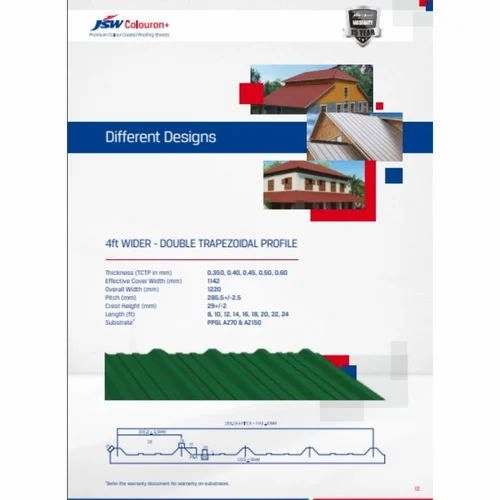 By choosing JSW’s 4-Foot Wider Double Ribbed Trapezoidal Profile Roofing Sheets, you invest in a product that offers a blend of enhanced coverage, strength, durability, and aesthetic appeal, ensuring long-lasting protection and an improved appearance for your structures.